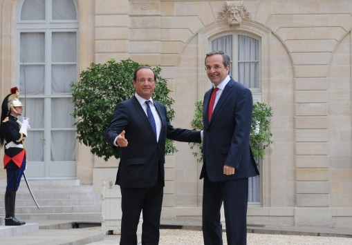Ο Γάλλος Πρόεδρος υπενθυμίζει ότι συνέβαλλε ώστε να διασφαλιστεί η παραμονή της Ελλάδας στην ΕΕ και διαμηνύει ότι η Γαλλία και οι γαλλικές επιχειρήσεις είναι έτοιμες να συμβάλλουν στο επόμενο στάδιο που είναι η ανάπτυξη. Αναγνωρίζει ότι το πρόγραμμα λιτότητας που εφαρμόζεται είναι σκληρό αλλά έχει αρχίσει και αποδίδει.