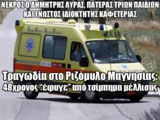 Στο πένθος έχει βυθιστεί το χωριό Ριζόμυλος Μαγνησίας, από το βράδυ της Κυριακής, οπότε και έγινε γνωστό ότι "έφυγε" από την ζωή ένας 48χρονος άνδρας, πατέρας τριών παιδιών, από τσίμπημα μέλλισας.