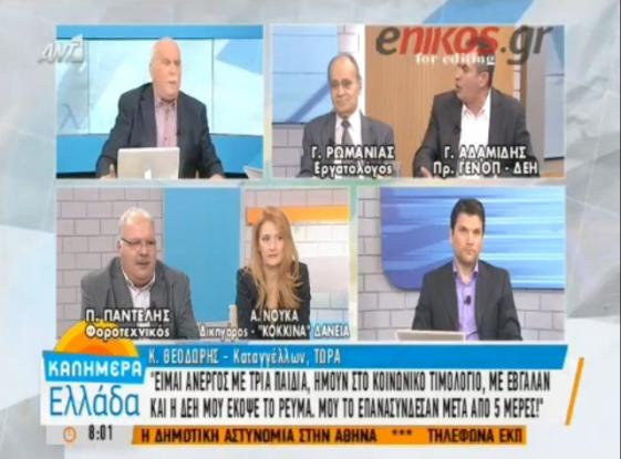 Όλα ξεκίνησαν όταν ο Γιώργος Παπαδάκης έδωσε τον λόγο σε έναν τηλεθεατή ο οποίος κατήγγειλε την ΔΕΗ πως του έκοψε το ρεύμα την στιγμή που τόσο ο ίδιος όσο και η σύζυγός του είναι άνεργοι ενώ έχουν τρία παιδιά, το ένα από αυτά μάλιστα μωρό.