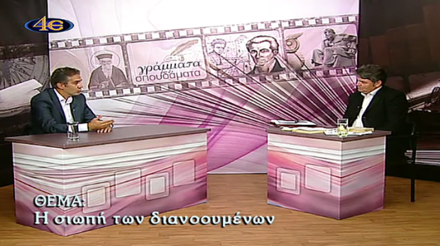 Δείτε την συνέντευξη του Θ. Μαλκίδη στον Δ. Νατσιό στον τηλεοπτικό σταθμό 4Ε, για την καταστροφή της πατρίδας μας και τη σιωπή των διανοουμένων.