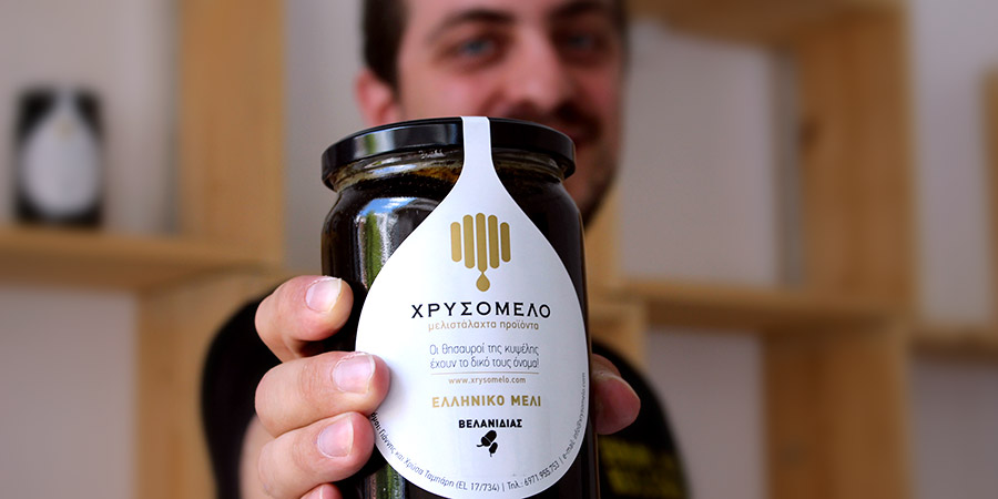 Έπειτα από ένα χρόνο σκληρής δουλειάς και μελέτης πάνω στα μυστικά του κλάδου, ο Γιάννης τοποθετεί το καλοκαίρι του 2014 στην αγορά τα πρώτα προϊόντα μελιού που φέρουν την επωνυμία Χρυσόμελο. Όπως μας εξηγεί, η επιλογή του ονόματος δεν είναι τυχαία καθώς ήθελε ένα brand που να υπογραμμίζει τον υψηλής θρεπτικής αξίας, για την υγεία μας, «θησαυρό», όπως είναι άλλωστε το μέλι.