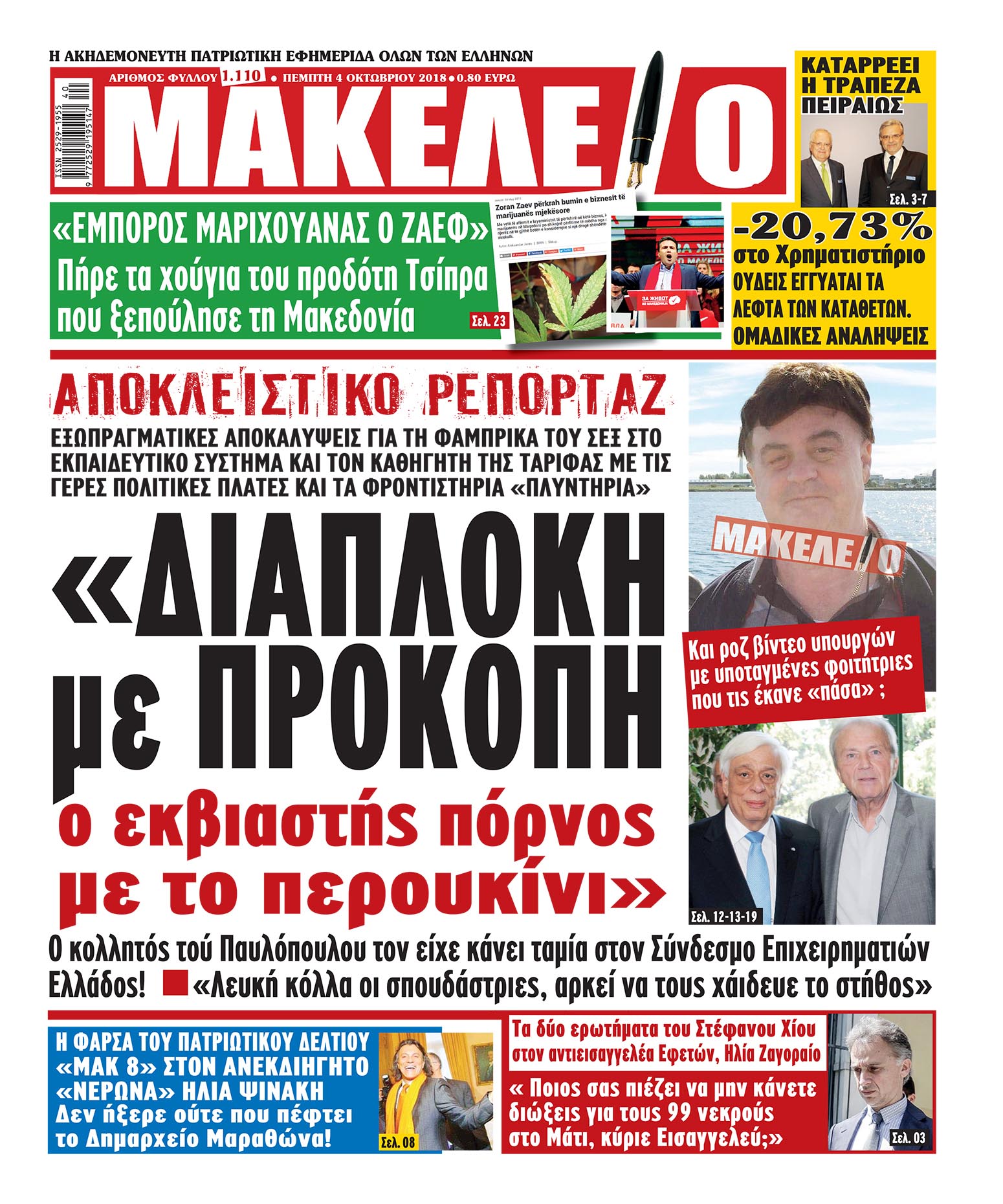 ΔΙΑΒΑΣΤΕ ΣΤΟ ΑΝΤΙΣΥΣΤΗΜΙΚΟ ΜΑΚΕΛΕΙΟ ΤΗΣ ΠΕΜΠΤΗΣ ΠΟΥ ΕΣΠΑΣΕ ΤΑ ΚΑΡΤΕΛ ΤΗΣ ΨΕΥΤΟΕΝΗΜΕΡΩΣΗΣ ΚΑΙ ΤΟΥ ΧΡΕΩΚΟΠΗΜΕΝΟΥ ΕΚΔΟΤΙΚΟΥ ΚΑΤΕΣΤΗΜΕΝΟΥ. ΣΤΟ ΜΟΝΑΔΙΚΟ ΤΑΜΠΛΟΪΝΤ ΦΥΛΛΟ ΠΟΥ ΚΥΚΛΟΦΟΡΕΙ ΣΤΗΝ ΕΛΛΑΔΑ ΚΑΙ ΠΑΕΙ ΚΟΝΤΡΑ ΣΤΗ ΔΙΑΦΘΟΡΑ ΚΑΙ ΤΗ ΣΑΠΙΛΑ ΤΗΣ ΕΞΟΥΣΙΑΣ ΜΕ ΤΗΝ ΙΔΙΑ ΤΙΜΗ ΤΩΝ 0.80 ΕΥΡΩ ΑΛΛΑ ΚΑΙ ΜΕ ΤΟ ΚΑΛΥΤΕΡΟ ΡΕΠΟΡΤΑΖ ΤΗΣ ΠΙΑΤΣΑΣ, ΑΠΟ ΤΙΣ 19-1-2015…