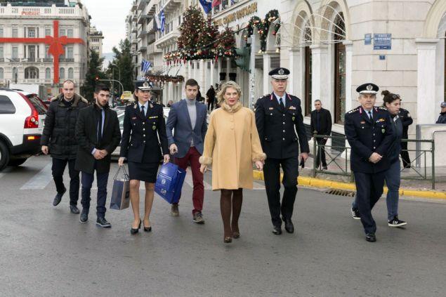 ενστόλων και μη, οι οποίοι είχαν αναλάβει και το έργο να κουβαλούν τα δώρα που προσέφερε η υπουργός, κατέβηκε στο κέντρο της Αθήνας, για να πραγματοποιήσει αυτή την ευγενική κίνηση προς τους τροχονόμους σε υπηρεσία.