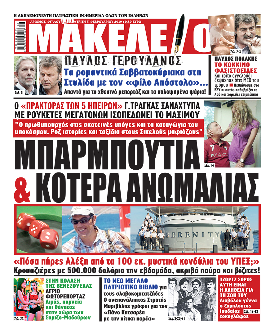 ΣΤΟ ΜΟΝΑΔΙΚΟ ΤΑΜΠΛΟΪΝΤ ΦΥΛΛΟ ΠΟΥ ΚΥΚΛΟΦΟΡΕΙ ΣΤΗΝ ΕΛΛΑΔΑ ΚΑΙ ΠΑΕΙ ΚΟΝΤΡΑ ΣΤΗ ΔΙΑΦΘΟΡΑ ΚΑΙ ΤΗ ΣΑΠΙΛΑ ΤΗΣ ΕΞΟΥΣΙΑΣ ΜΕ ΤΗΝ ΙΔΙΑ ΤΙΜΗ ΤΩΝ 0.80 ΕΥΡΩ ΑΛΛΑ ΚΑΙ ΜΕ ΤΟ ΚΑΛΥΤΕΡΟ ΡΕΠΟΡΤΑΖ ΤΗΣ ΠΙΑΤΣΑΣ, ΑΠΟ ΤΙΣ 19-1-2015…