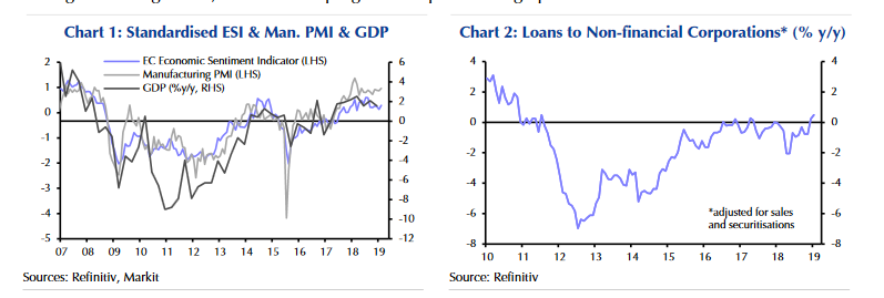Τέλος, η συνεχιζόμενη επιβράδυνση στην υπόλοιπη Ευρώπη (σύμφωνα με τις εκτιμήσεις της C.E. η ανάπτυξη της περιοχής το 2019 θα κινηθεί στο 1% και το 2020 ακόμα χαμηλότερα) θα "χτυπήσει" τις εξαγωγές.