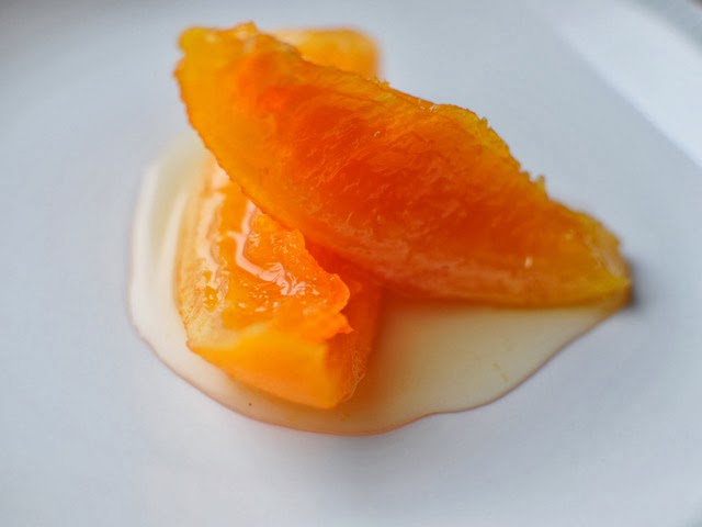 Αφού βράσουν (δεν πρέπει να είναι πολύ μαλακά), τα αφήνουμε να παγώσουν και στη συνέχεια κόβουμε το κάθε πορτοκάλι σε 8 κομμάτια.