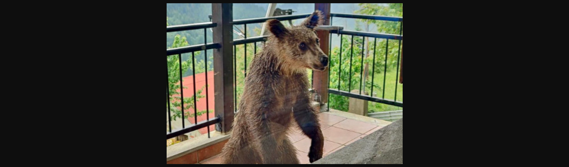 Πρόκειται για δύο στιγμιότυπα με εμφάνιση της μικρής αρκούδας σε μπαλκόνι, στη μία από τις οποίες έχει σηκωθεί όρθιο και φαίνεται να κοιτάζει μέσα από το τζάμι που είναι μπροστά του, ίσως αυτούς που το φωτογραφίζουν.