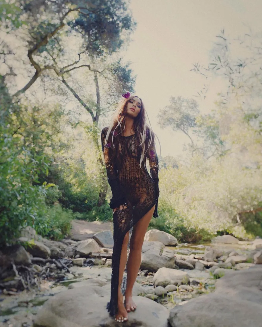 Η Μέγκαν Φοξ στη λεζάντα των φωτογραφιών με το άσπρο ρούχο έγραψε: «Ο ήλιος στον τέταρτο οίκο του ταύρου»