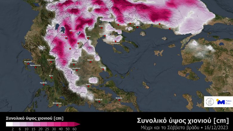 Εκτιμώμενο ύψος χιονιού στην Ελλάδα μέχρι το βράδυ του Σαββάτου – Φωτ.: Meteo