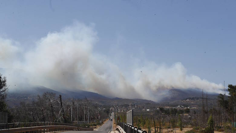 Μαίνεται η μεγάλη φωτιά στην Πάρνηθα, της οποίας η κατάσβση είναι δύσκολη λόγω της έντασης των ανέμων που φτάνουν και τα 100 χιλιόμετρα την ώρα.