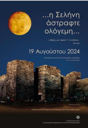 Το Υπουργείο Πολιτισμού διοργανώνει και φέτος τις εκδηλώσεις της Αυγουστιάτικης Πανσελήνου, υπό τον συντονισμό της Γενικής Διεύθυνσης Αρχαιοτήτων και Πολιτιστικής Κληρονομιάς, προσφέροντας ελεύθερη είσοδο σε επιλεγμένους αρχαιολογικούς χώρους, μνημεία, ιστορικούς τόπους και μουσεία, τη νύχτα της Πανσελήνου, σήμερα Δευτέρα 19 Αυγούστου 2024.