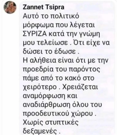 Δείτε την ανάρτηση της Ζανέτ Τσίπρα: